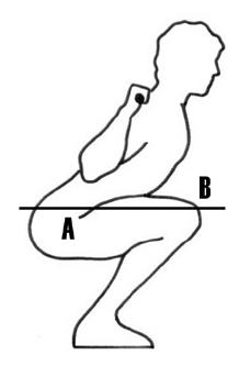 There is a long-running debate among powerlifters about what it really means to “go to depth” on a squat. Most powerlifters seem to agree that anything where your hip crease is below your knees is sufficient. There are some who argue that you should go as deep as possible.