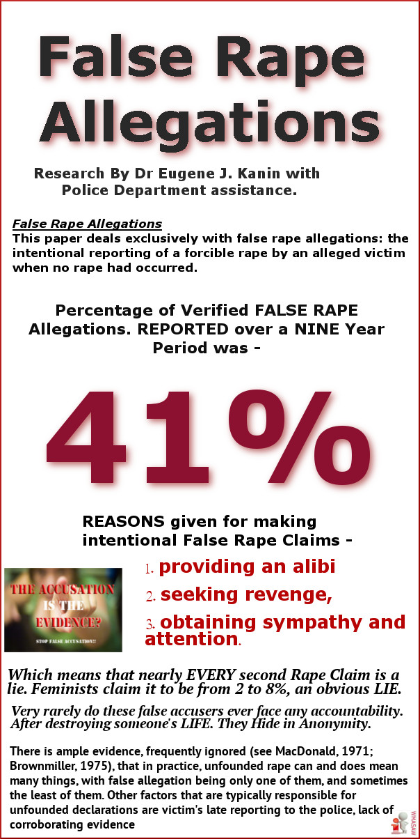 It is now perfectly legal and permissible and even easy for a woman to come forward and make a false rape accusation. The police and society at large are expected- nay, demanded– to take her at her word. Not one shred of evidence is required before public resources and taxpayer monies are tied up in the process of arresting, incarcerating, and bringing to trial men whose only mistake was to get involved with women whose worst instincts are now allowed to rule over them unchecked by any sense of morality or shame.