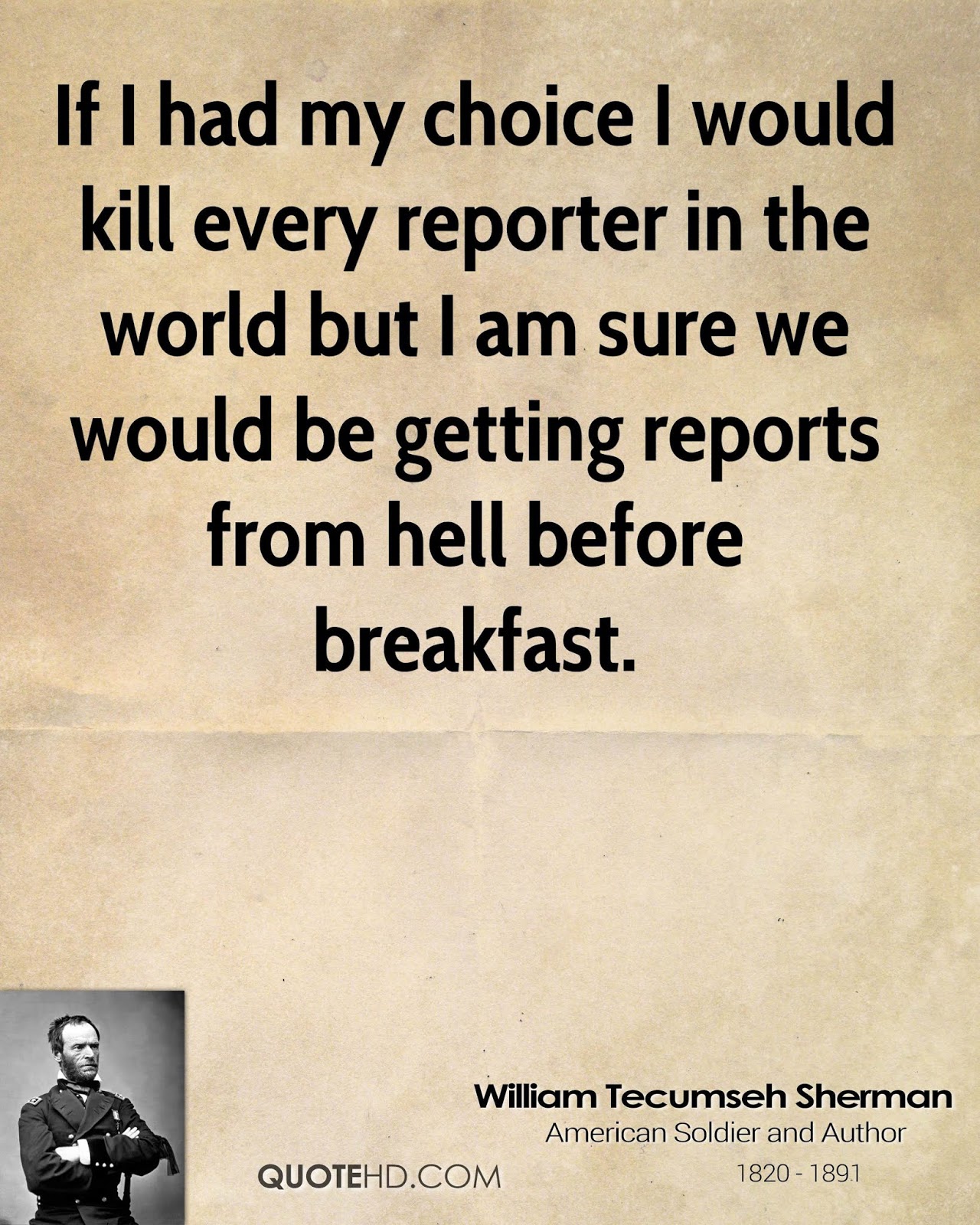 There is, however, one idea of General Sherman’s that I think all of us right-thinking folks, regardless of whether we are (damn) Yankees or Southrons or anything else, can agree upon: lining up the lying presstitues of the Dinosaur Media and having them all shot for treason would not necessarily be such a horrible idea at this stage.
