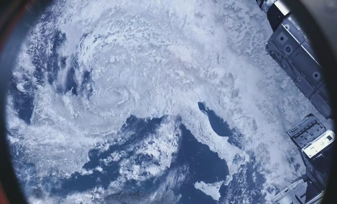 That picture up the top is from the highly overrated and overwrought Roland Emmerich disaster-porn movie, The Day After Tomorrow from 2004. It shows Europe as seen from the International Space Station after catastrophic runaway global warming causes massive global cooling.