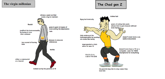 Gen Z? All they know is the downward spiral, and they know that it is them that will have to rebuild the wreckage put into motion by those before them. Which is why they want nothing to do with Millennials and above: those people are in the way. Gen Z just doesn't have the raw numbers or developed talent to build yet. Besides, society hasn't been completely razed to the ground. That has to happen first. We took a big step in that direction in 2020, right on time. There is a sweet spot where youthful energy, talent and ideas create a perfect storm, and it looks like we're going to hit it. Gen Z is the "new" America, and it actually looks very bright. The problem is we have about 10 years and 250 million people worth of dead weight to cull first. Some are Boomer, some are Millennial and some are illegal, but culled they will be. Befriend a teenager and team him useful skills, and get him into a church. Preferably an Apostolic one. It's the only thing that will save you from being burned at the stake, for when it's all said and done I believe these fuckers will do it.