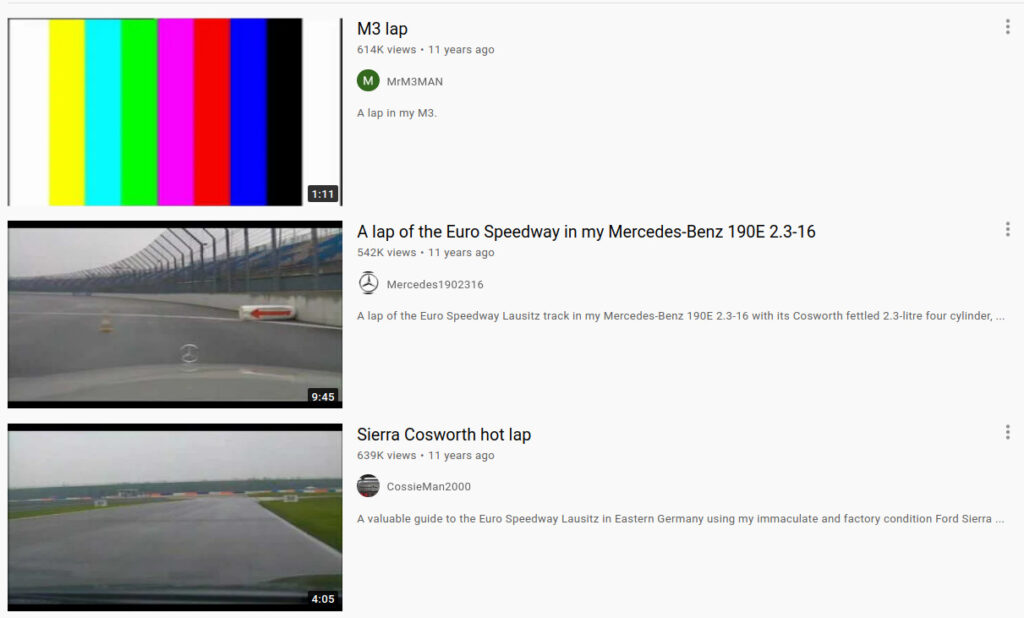 By the way, the videos that the Three Wazzateers shot of their laps around the Euro Speedway are, in fact, STILL on teh YOOTOOBZ – and they have amassed HUNDREDS OF THOUSANDS of views because of idiots fanboys like me who went to click on them for a larf: