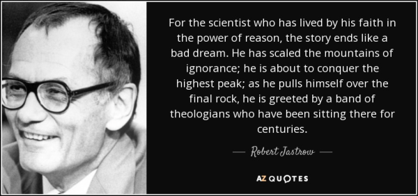 Robert Jastrow’s quote, shown above, has never been more appropriate than it is now. He was right, and the midwit morons that comprise the High Priests of Scientism are going to feel like right nitwits by the time they realise it.