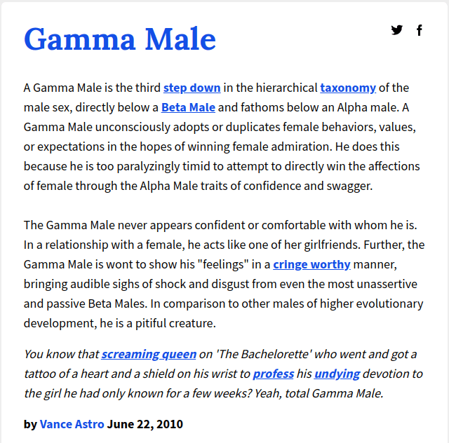 Let’s get to the first question in that set, then – the Urban Dictionary definition of Gamma. You kind of have to see this to understand how delusional the definitions actually are. I’ve compiled four of them as screenshots below. Take a look and try to figure out which one is correct: