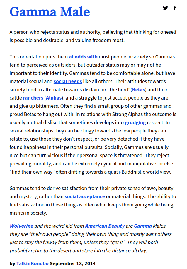 The best one-line take on the difference between Sigmas and Gammas comes from LRFotS Bardelys the Magnificent from last November: