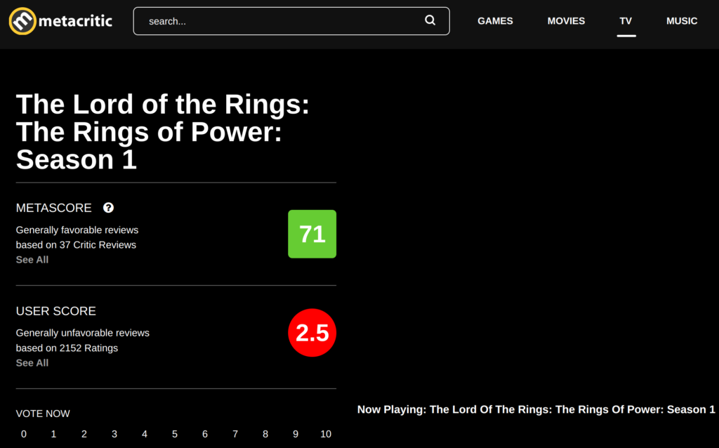 It would appear that a VERY substantial part of the LotR fandom agrees with that sentiment, because Amazog has been busy desperately hiding and running away from the data concerning the utterly underwhelming performance of its “flagship” billion-dollar budget-busting bonanza of exceedingly well-polished dog-turds: