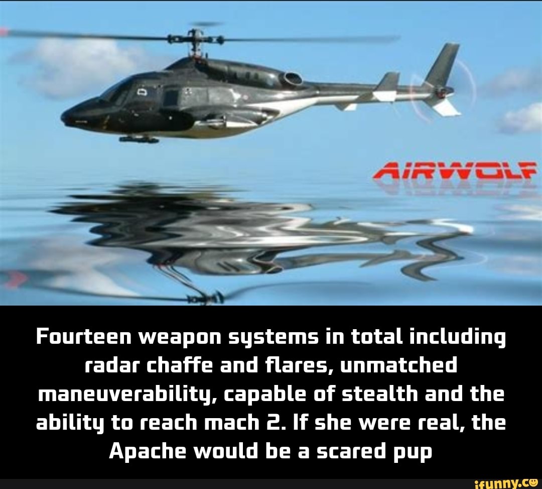 Clearly, The Male Brain and I have similar(ly awful) taste in TV, because both of us grew up watching shows like The A-Team, MacGyver, and of course, Airwolf. The latter is the theme of this week’s post. I certainly have quite fond memories of the epic Airwolf soundtrack playing over the speakers every week.