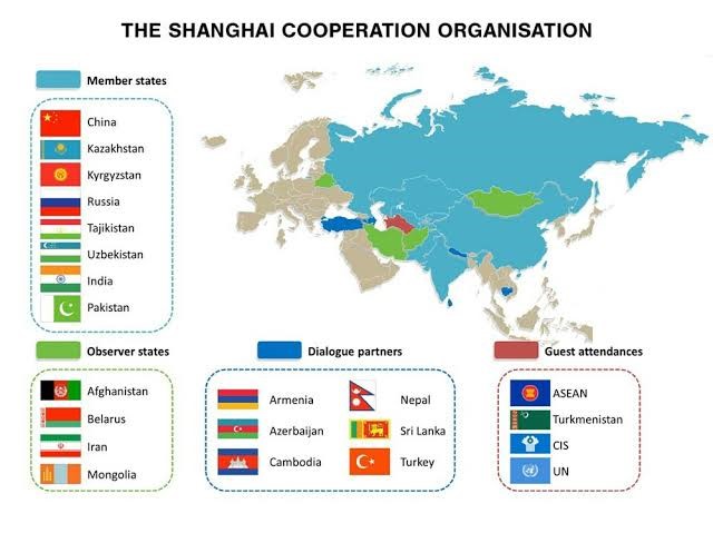 And here is a map of the current membership of the Shanghai Cooperation Organisation, a Eurasian body that promotes trade, economic cooperation, and dialogue between member states: