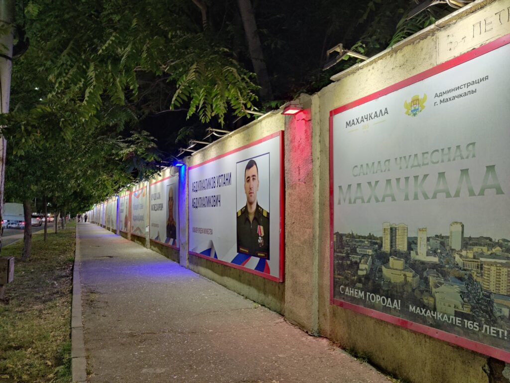 The first two pictures you see up there are of the main avenue in Makhachkala. Along that road, you will see pictures of men who have received the Order of Courage, a state award of the Russian Federation, for vaolour shown in the field of battle. There are dozens, perhaps hundreds, of such pictures.