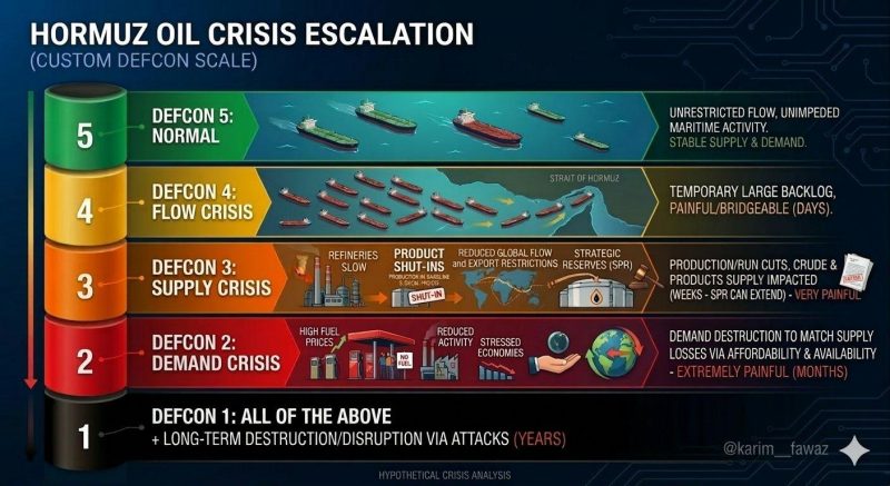 Consider: roughly 10-20% of the world’s energy supply is now choked off. Up until today, the only thing stopping a complete collapse of the energy markets, was the fact that the Saudis could still route about 7mbpd to Yanbu via a pipeline from their east to their west coast, and export their oil through the Red Sea. But now, the Houthis have joined in this war against Izzrael and the FUSA, and they could, in theory, shut off the Red Sea route too.
